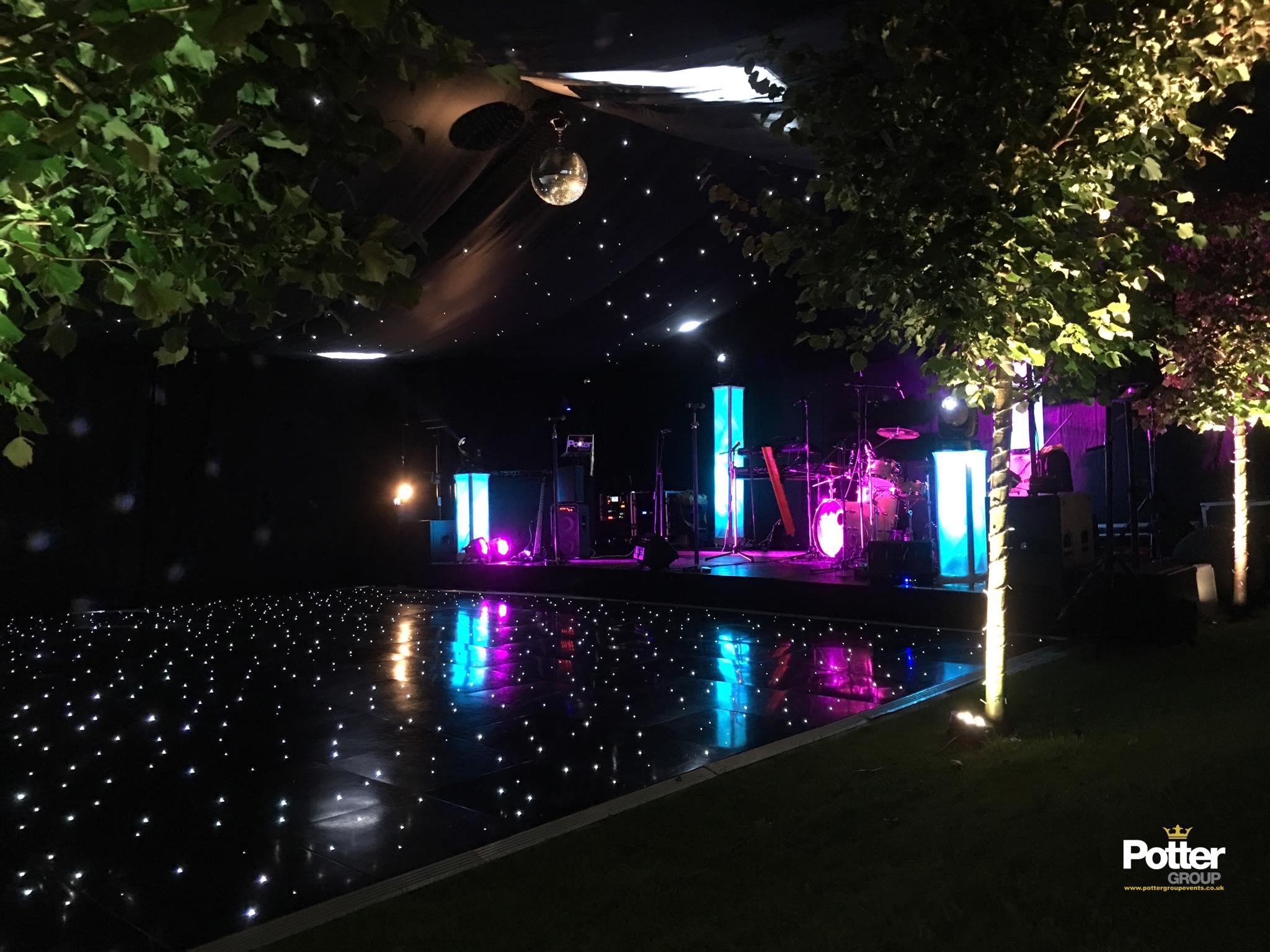 Our wireless uplighting systems allow discreet placement without any unsightly wires or plug sockets. We’ll programme the colours to perfectly ensure everything looks coordinated and in tune with your vision.